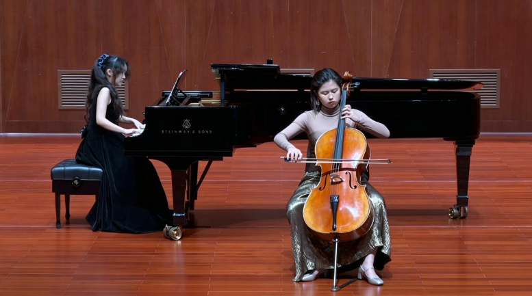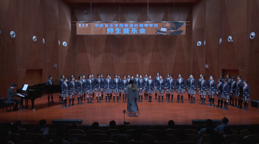 少年学子的表现同样可圈可点。初二大提琴学生张十端在初二钢琴学生关高的伴奏下,演奏了格拉祖诺夫《游吟诗人之歌》;初三小提琴学生程望舒演奏了帕格尼尼《小提琴随想曲第九首》,沉稳而富有感染力的表现赢得了现场观众喝彩。混龄分层视唱练耳班带来的二声部视唱《光鸣空谷》,声音和谐,如空谷回响,令人耳目一新。