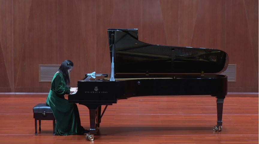 王滋鑫老师演奏了肖邦《夜曲》Op.32 No.1,钱一诺老师演奏了肖邦《谐谑曲第一号》Op.20,汪洋老师以肖邦《幻想波兰舞曲》Op.61为钢琴独奏部分收尾。三首肖邦经典在老师们的指尖下流淌出或静谧、或激昂、或诗意的旋律,三位教师的演奏风格各异,展现了学校钢琴专业教师多元的表现形式和扎实的演奏水平。由邱倩茹(小提琴)、张韵涵(大提琴)、余娜(钢琴)三位教师联袂演绎的肖斯塔科维奇《e小调第二钢琴三重奏》Op.67第四乐章,以精准的配合、深沉的情感,将肖斯塔科维奇笔下的复杂情绪层层铺展,技惊四座。