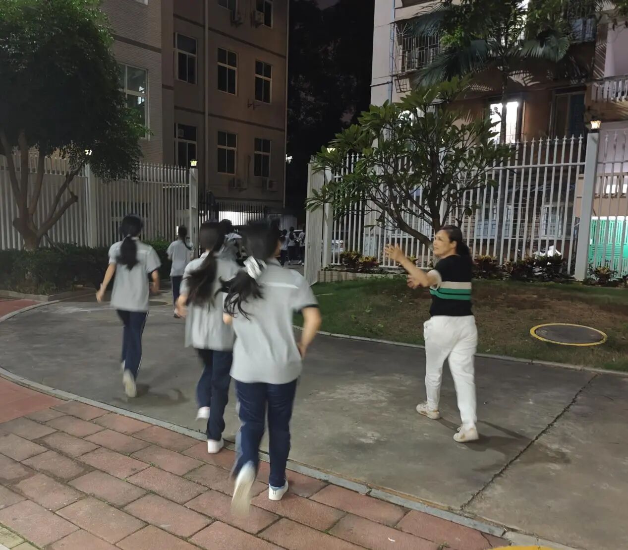 21时整,急促的警报声准时响起,学校生管部门通过对讲机、宿舍广播及监控系统,快速组织各楼层住宿生开展疏散。疏散过程中,学生以小步快跑的方式沿预设疏散路线有序撤离,最终顺利抵达学校田径场。人员集结完毕后,江头消防大队吴班长对本次演练进行点评。