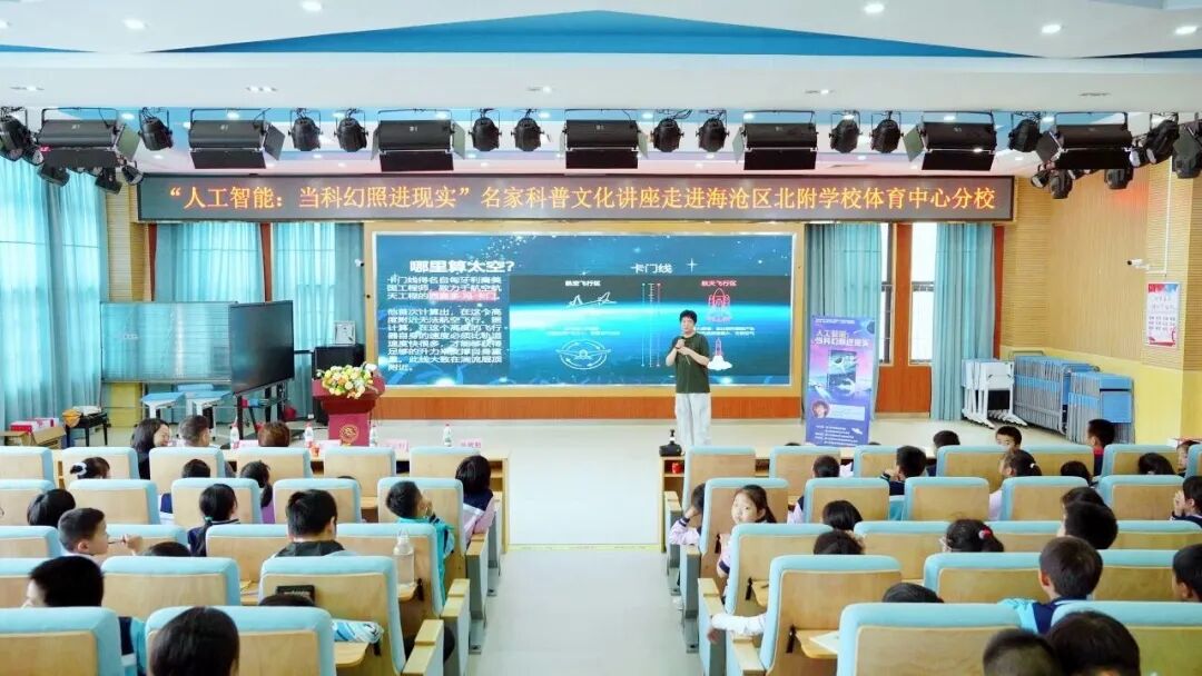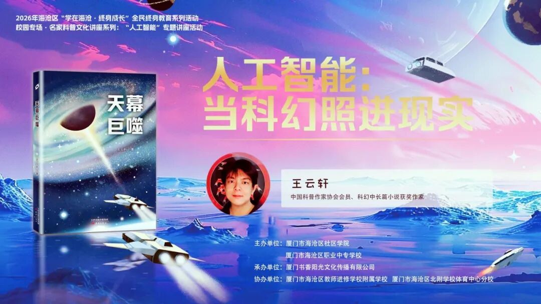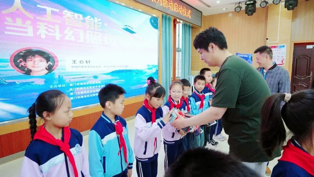 首场活动特别邀请知名科幻作家王云轩老师带来“人工智能:当科幻照进现实”主题讲座,为海沧区北附学校体育中心分校三年级、海沧区教师进修学校附属学校六年级共计413名孩子们开启一场科幻与科技的奇妙之旅。