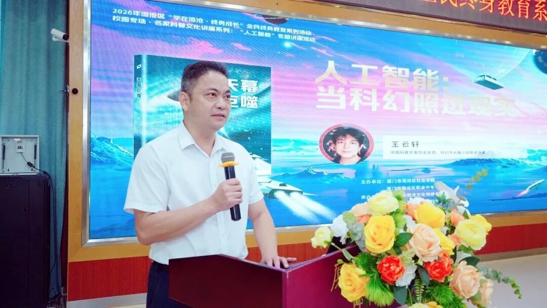 启动仪式上,海沧区社区学院副院长陈宏发表致辞。他指出,2026年是“十五五”规划开局之年,也是《全民阅读促进条例》正式实施的关键之年,抓好全民终身学习、厚植书香土壤,是赋能城市发展、助力个人成长的核心举措。